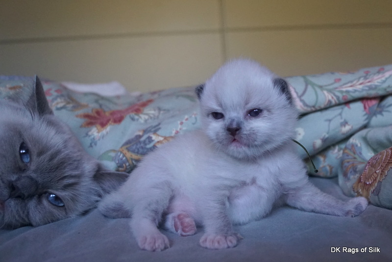 Vores Pongee-kuld blev født den 8. september 2025 . Der er to dejligt, store killinger i kuldet - 2 små drenge, som vejede henholdsvis 105 og 108 g ved fødslen. Mor til kuldet er vores hunkat IC Vicentka FelinoTherapy*CZ aka Tinka og vores hankat DK Rags of Silk Floss Faramir. Det er Tinkas 2. kuld, og hun er en supermor. De to drenge vokser så det knager.