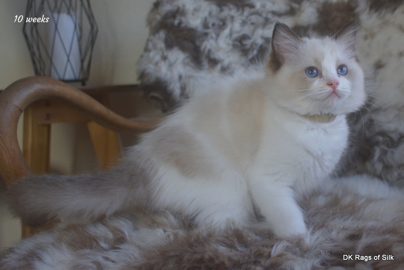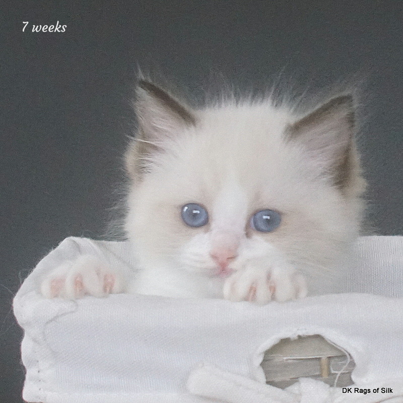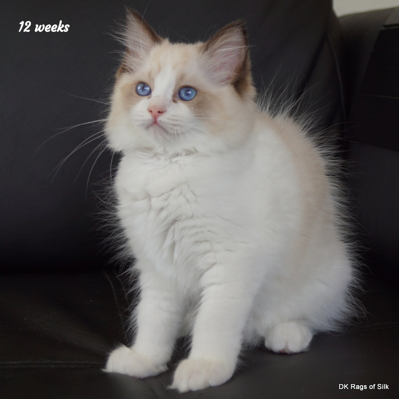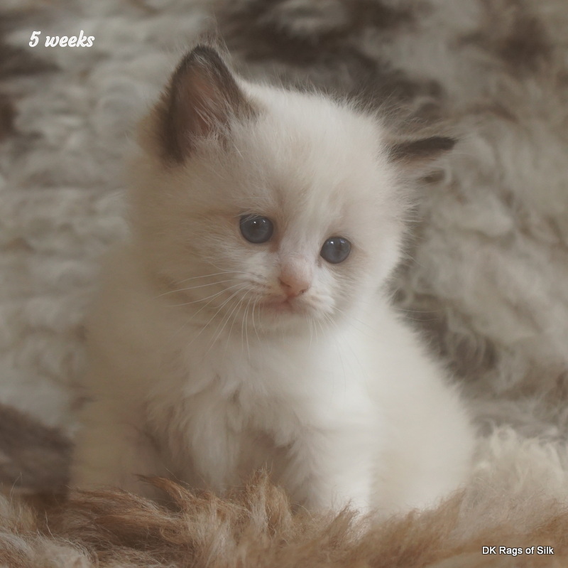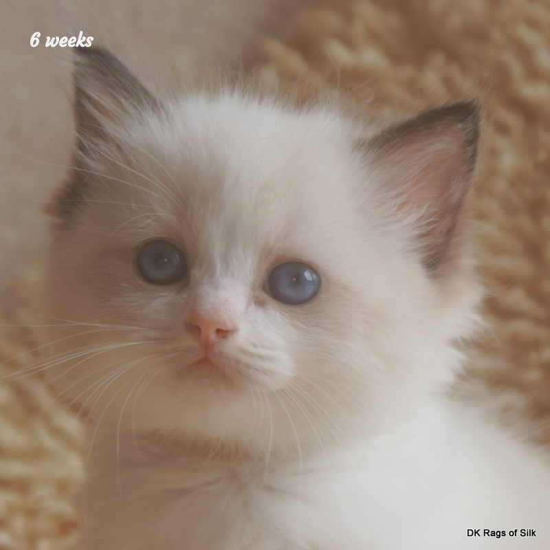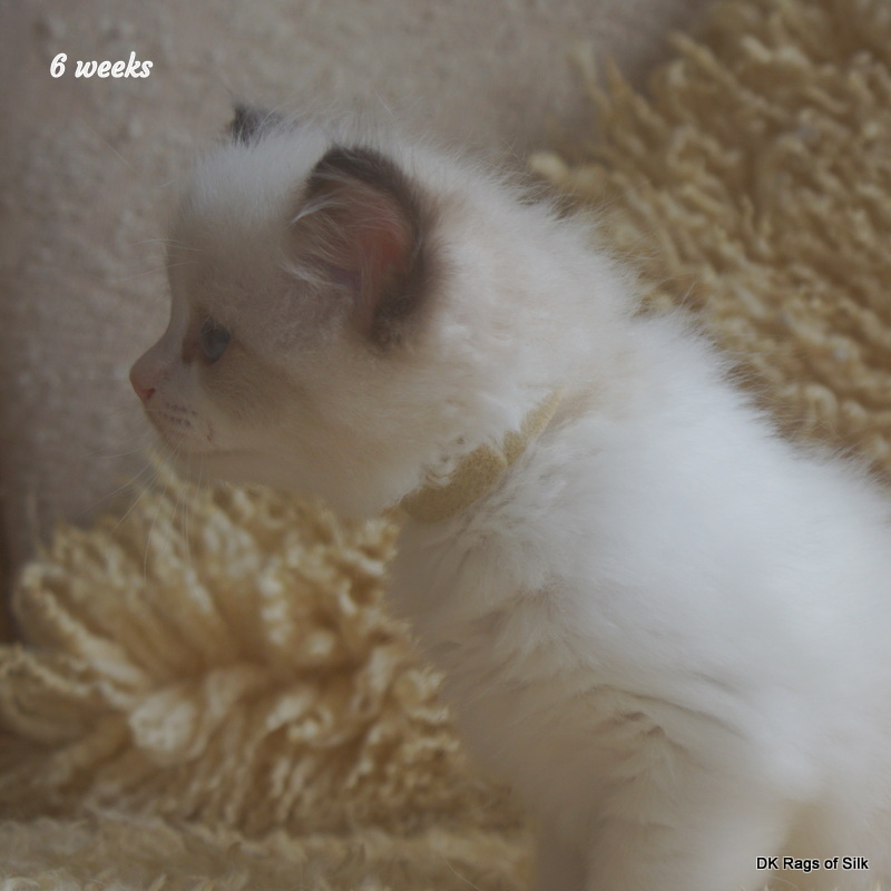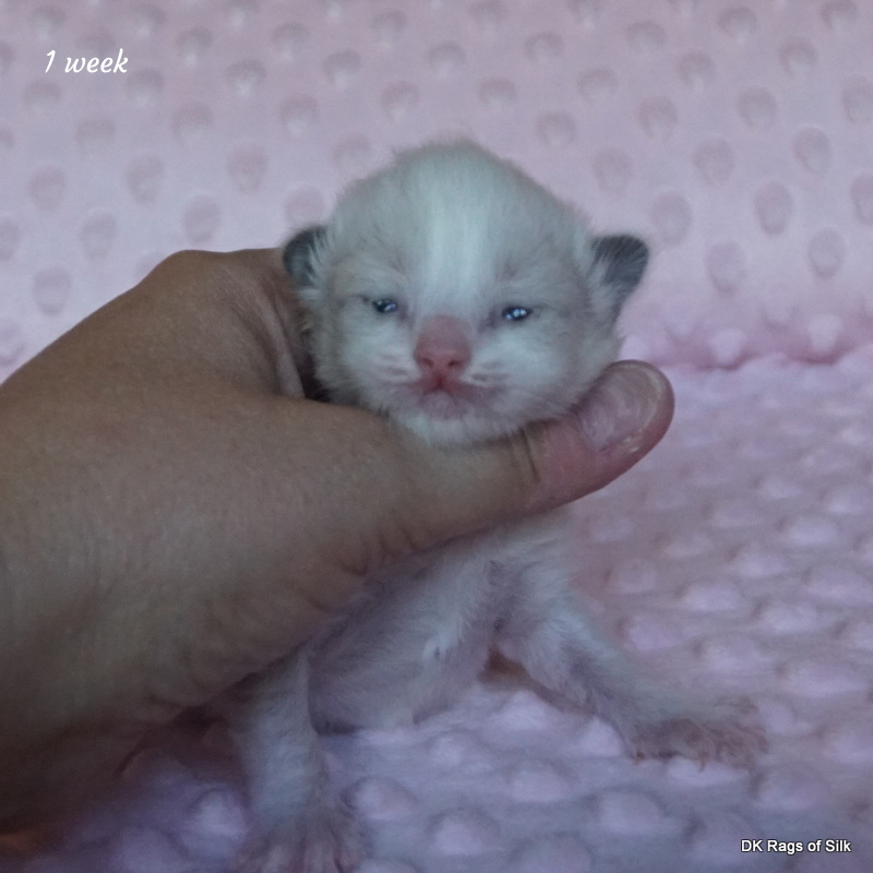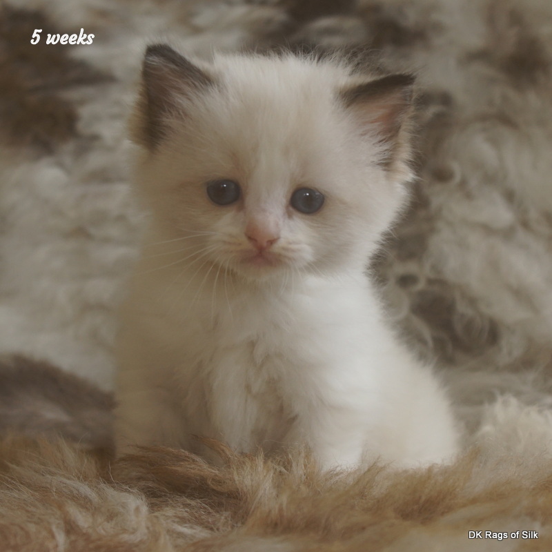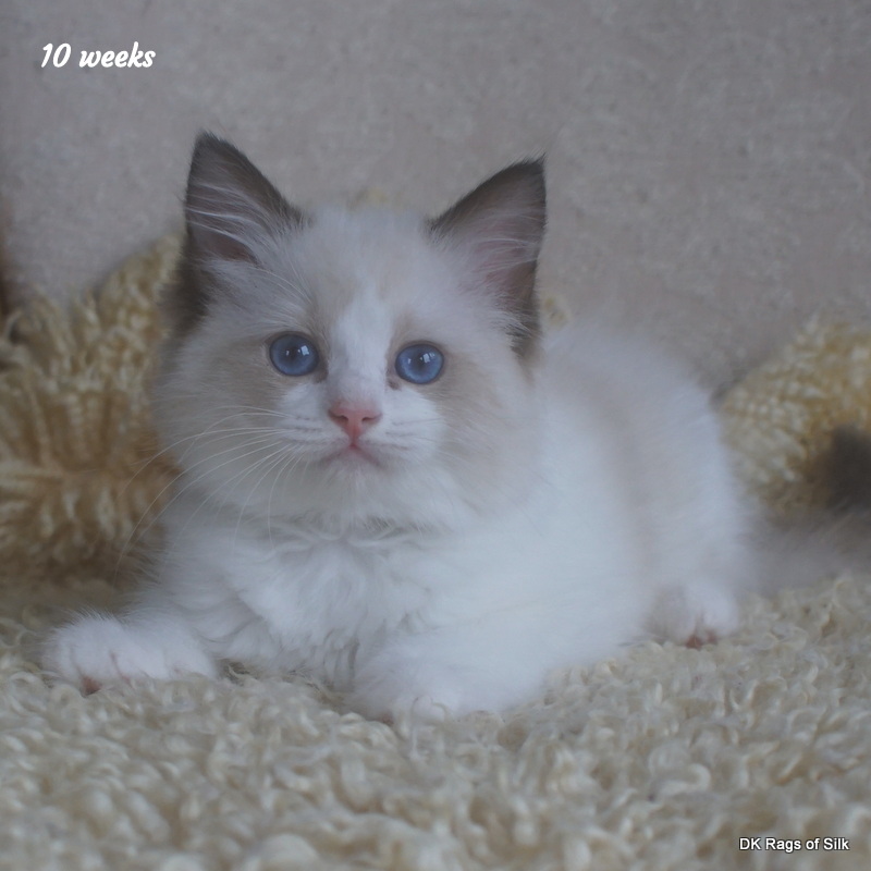 Pumpkin er en skøn lille ragdoll pige. Allerede få uger gammel har hun en dejligt udtryk, god bredde og profil. Hun har et meget roligt og afslappet gemyt. Når vi løfter hende op, slapper hun fuldstændigt af, så hun er en rigtig ragdoll.
