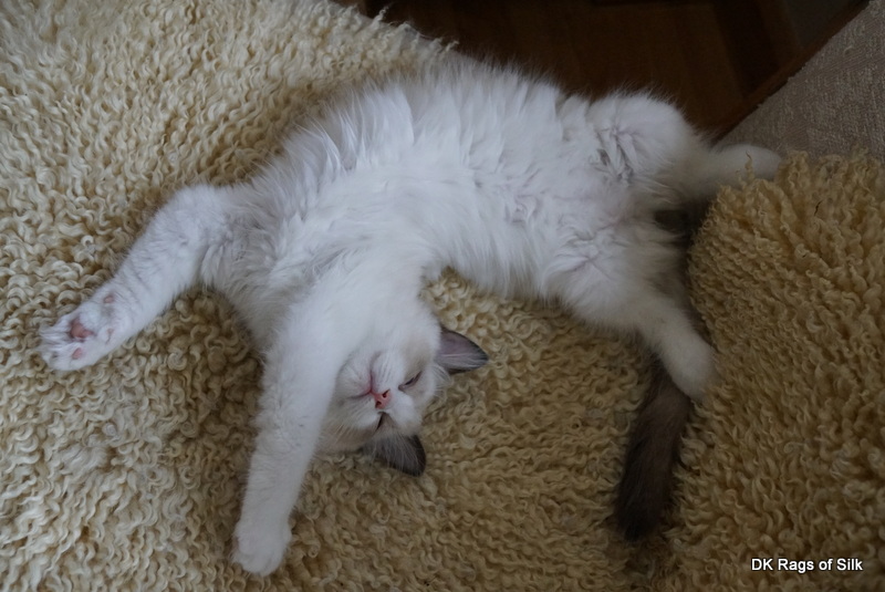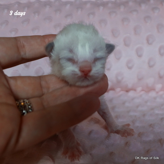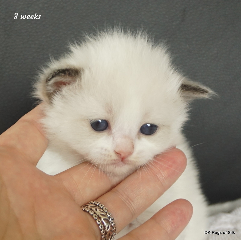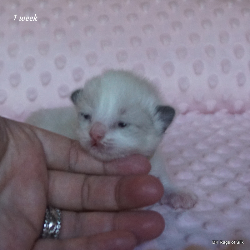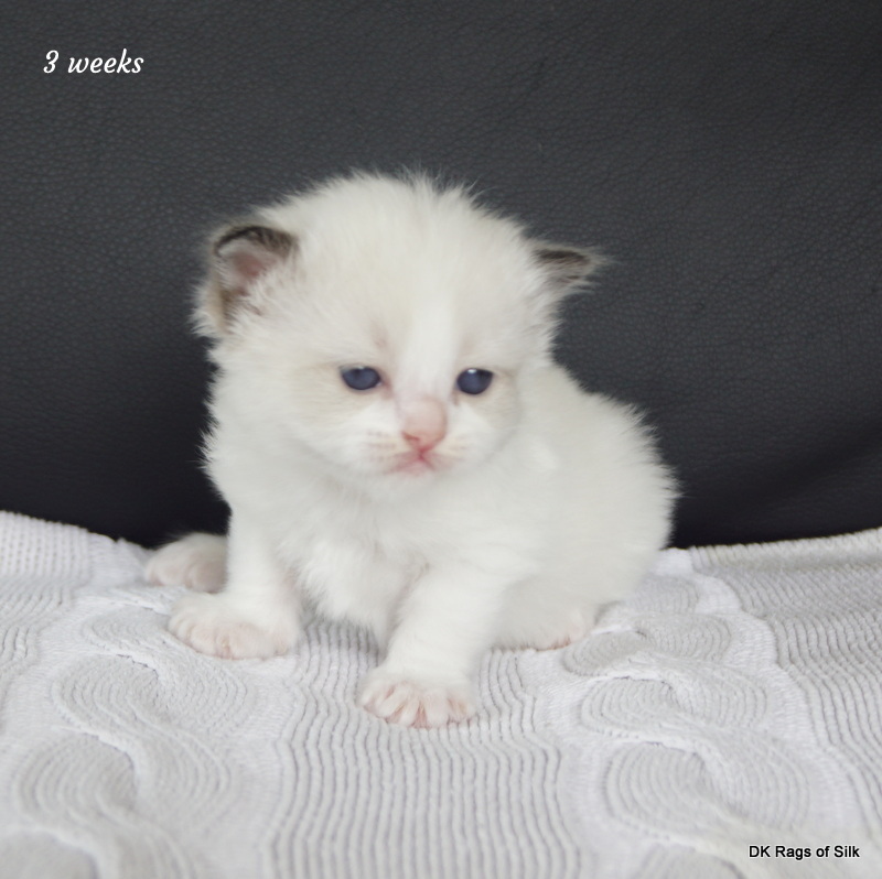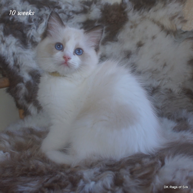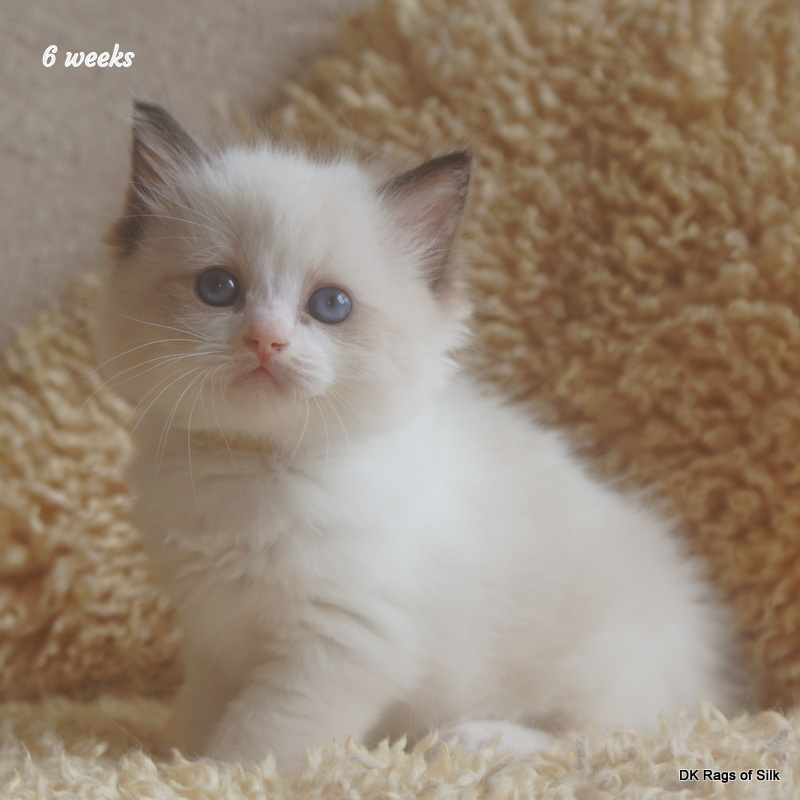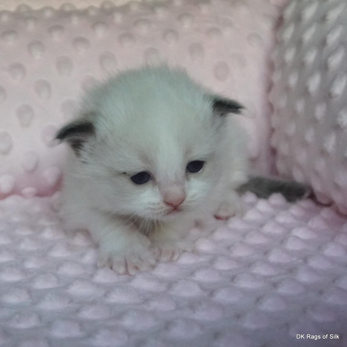 Pumpkin er en skøn lille ragdoll pige. Allerede få uger gammel har hun en dejligt udtryk, god bredde og profil. Hun har et meget roligt og afslappet gemyt. Når vi løfter hende op, slapper hun fuldstændigt af, så hun er en rigtig ragdoll.