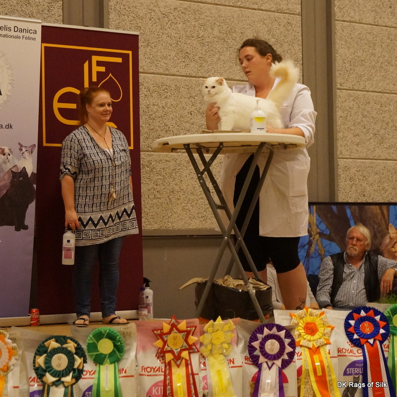 I dag har Jesper været på udstilling i Køge med Heartbreaker og Hamara. Heartbreaker fik sit første CAC og blev nomineret på sin første dag i åben klasse. Vi er så stolte af ham. Hamara var med på udstilling for første gang. Det klarede hun fint. Hun blev EX1 med en fantastisk bedømmelse og tabte BIV på et hængende hår til en meget smuk og noget ældre svensk ragdoll.