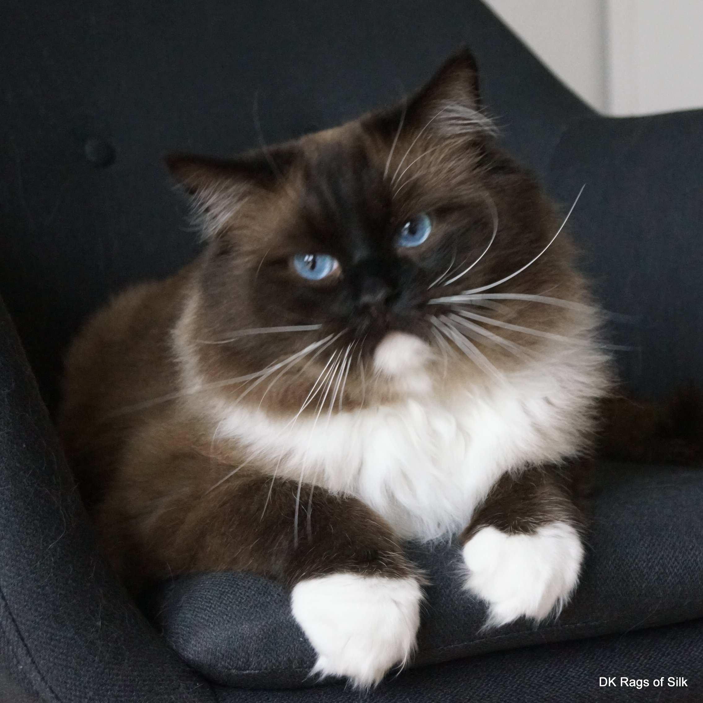 Zeus er en brun mitted ragdoll dreng på 1½ år, som vi ejer sammen med Tabita Kehlet fra DK Tabirags. Vi har besluttet, at Zeus ikke længere skal indgå i vores avlsprogram, og derfor søger flytter han nu til et nyt hjem. Han er den sødeste sofaløve, som fortjener et liv som forkælet kælekat. Zeus har fundet et nyt dejligt ligt hos et par af vores tidligere killingekøbere. Vi er så glade på hans vegne.