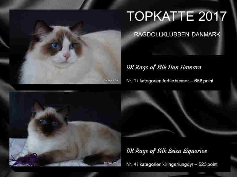 Jubiiiii - i går fik vi den gode nyhed, at hele to katte med vores eget stamnavn er kommet på Ragdollklubben Danmarks Topkatteliste 2017. Vi er superstolte og taknemmelige.