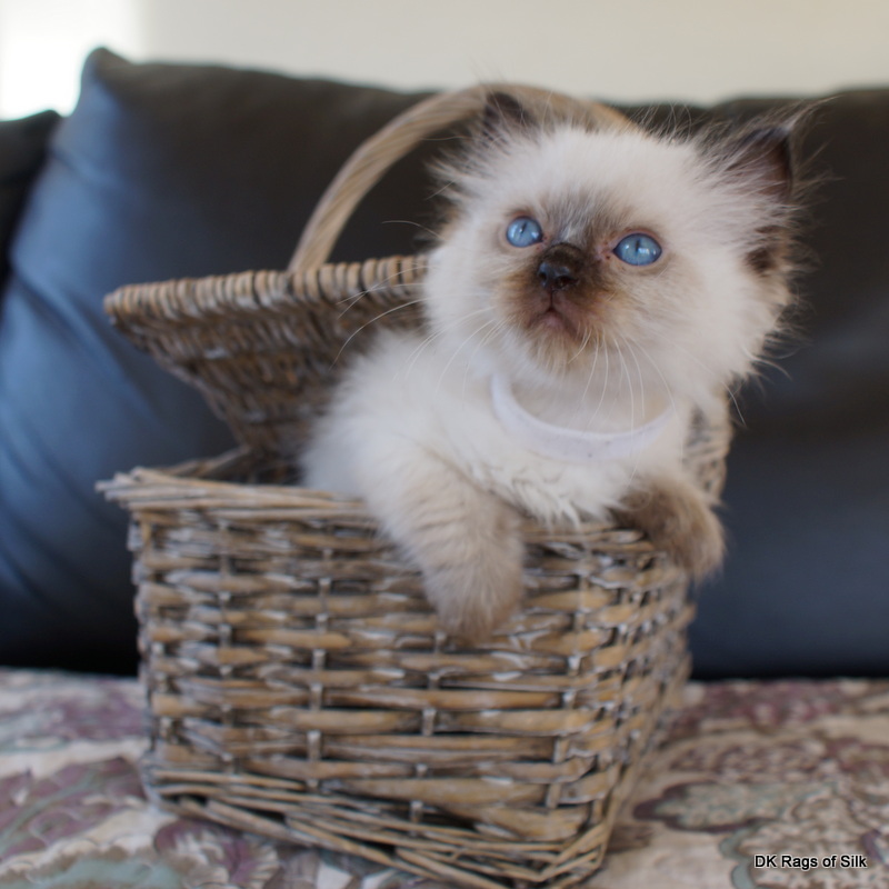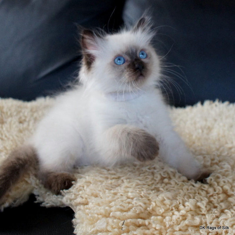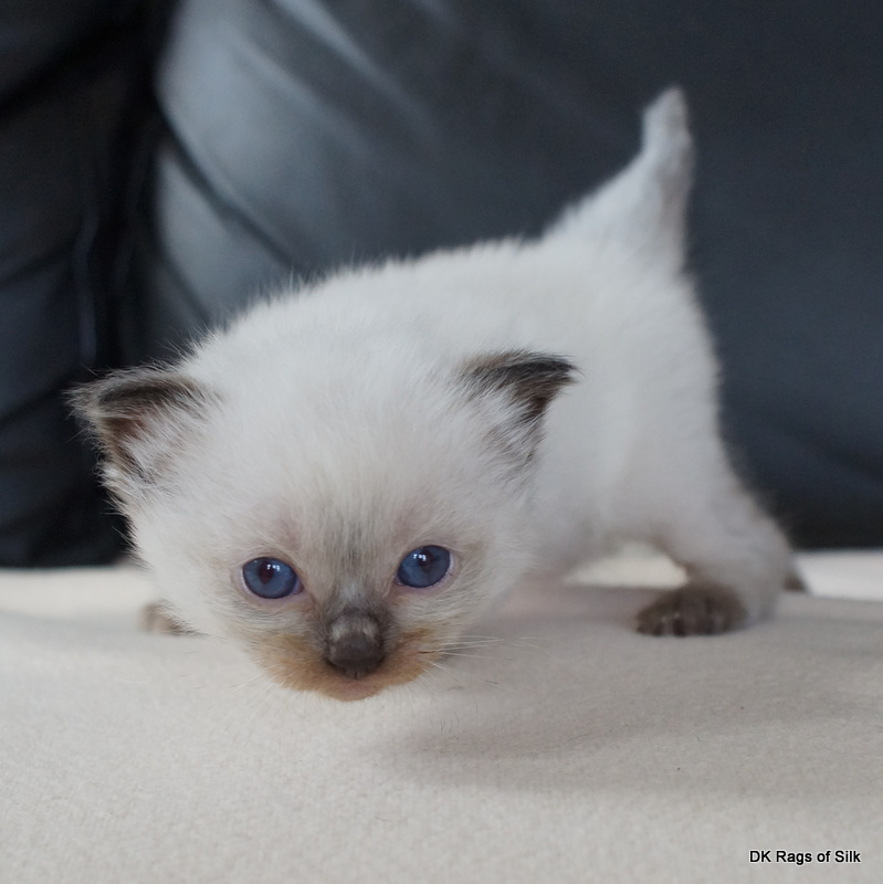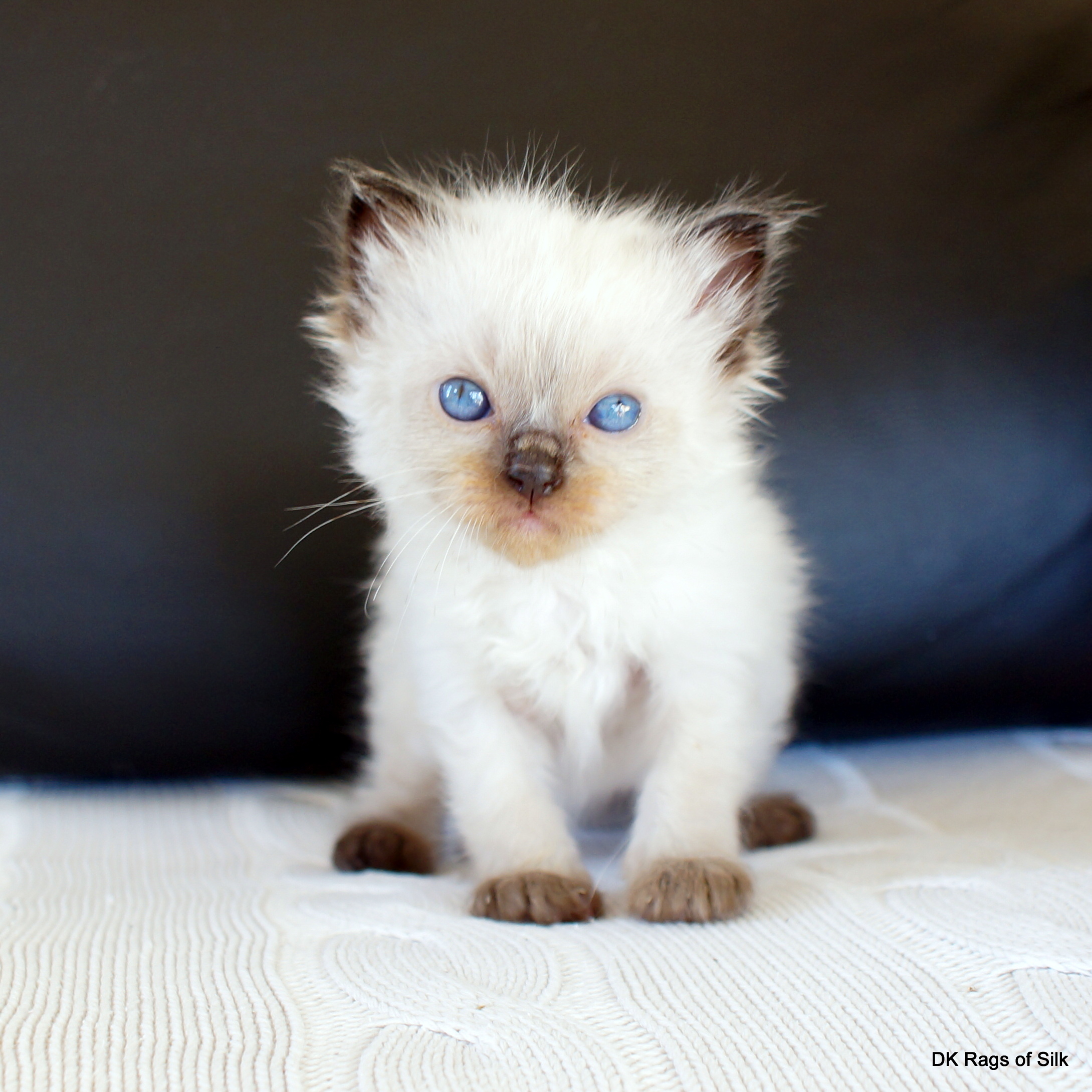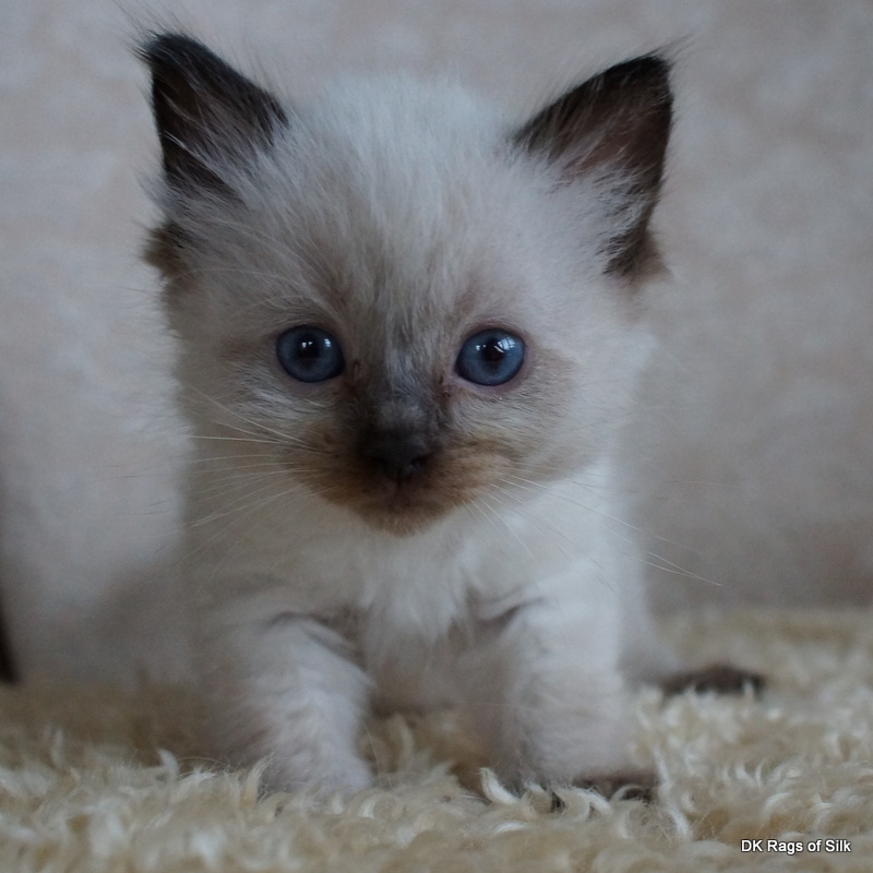 Her kan du følge ragdoll killingens udvikling uge for uge fra dens fødsel til den flytter ind hos sin nye famlie.