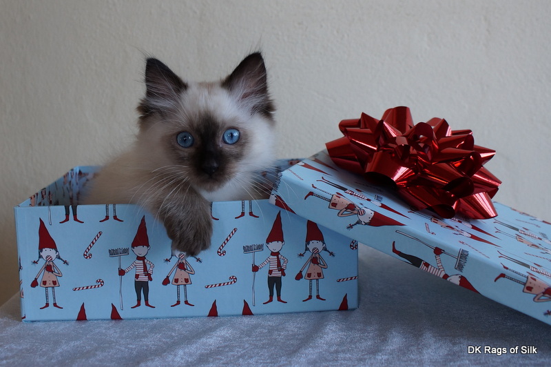Lille Gino på 204 g er kuldets mindste. Han er seal (brun) colourpoint.