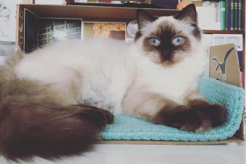 Gino vejer nu 744 g, Gino har haft besøg af sin nye menneskemor Stine, som havde et fint hæklet tæppe med til ham. Det ligger nu i kradsetræet, hvor killingerne elsker at putte sammen. Gino skal have det med sig til sit nye hjem og så er det dejligt at det dufter trygt og godt af hans søskende.