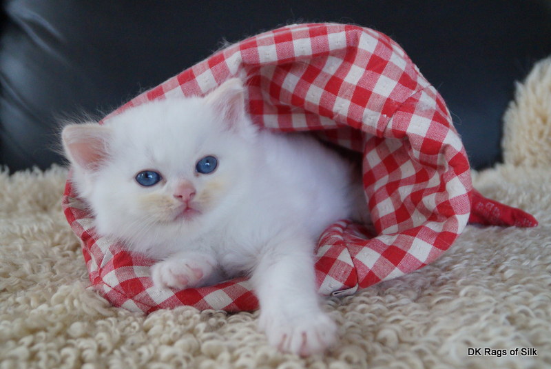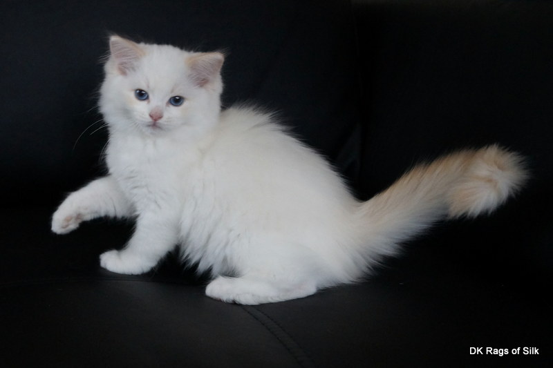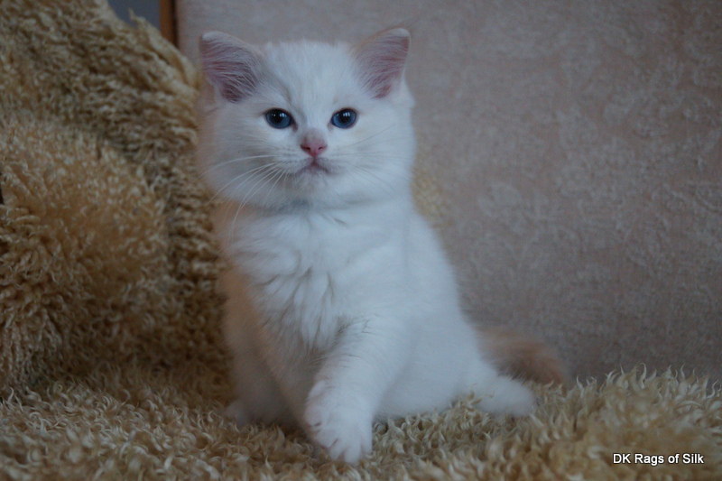 King er blevet en fantastisk dejlig hankat. Han har arvet sin mors bredde og har et skønt udtryk og fantastisk øjenfarve for en rød ragdoll. Han bor som fertil han hos vores gode venner Dennis og Marija fra DK Colletto's og har i år fået sit første kuld.