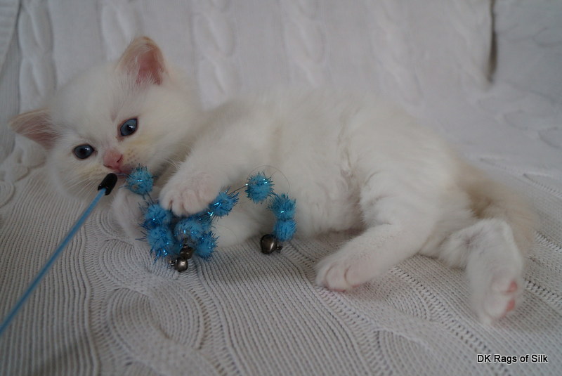 Skønne King's Gold er den største i kuldet. Han er en aktiv og udadvendt lille herre, der elsker at lege. Han har en helt vidunderlig øjenfarve for en så lys kat