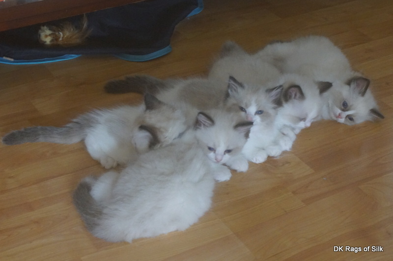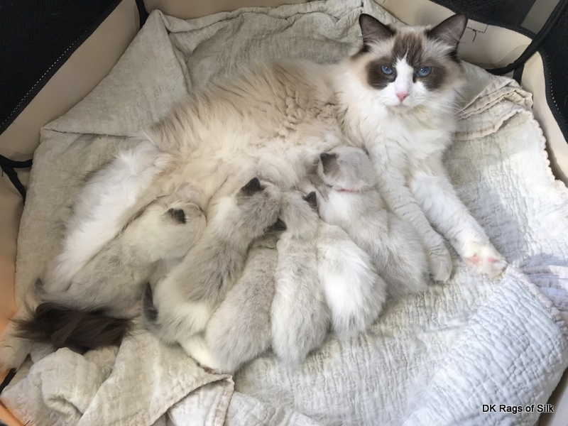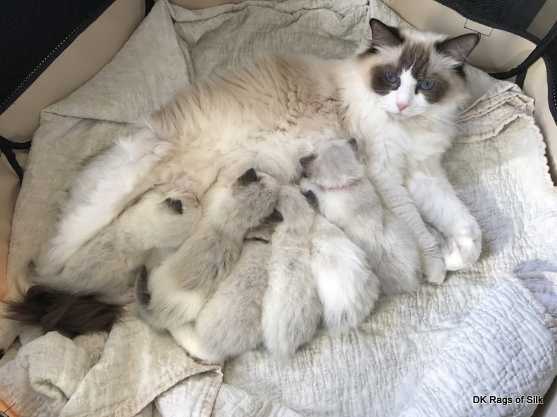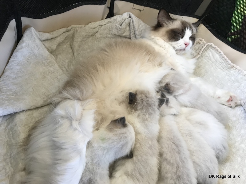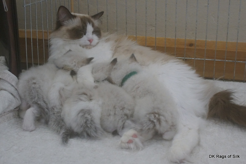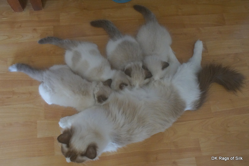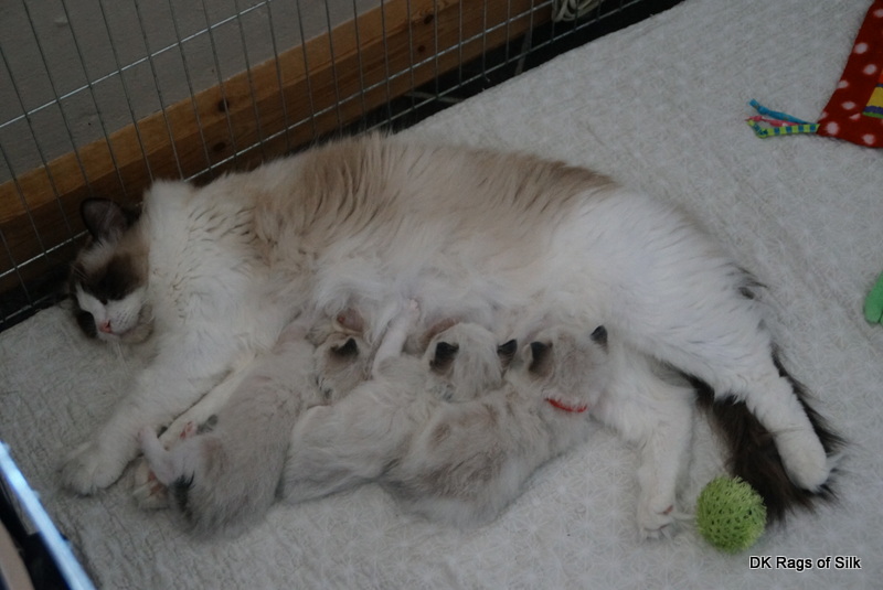 Her kan du følge kuldet udvikling i billeder. På billedet herunder er killingerne kun få timer gamle og mor Hamara passer godt på dem.