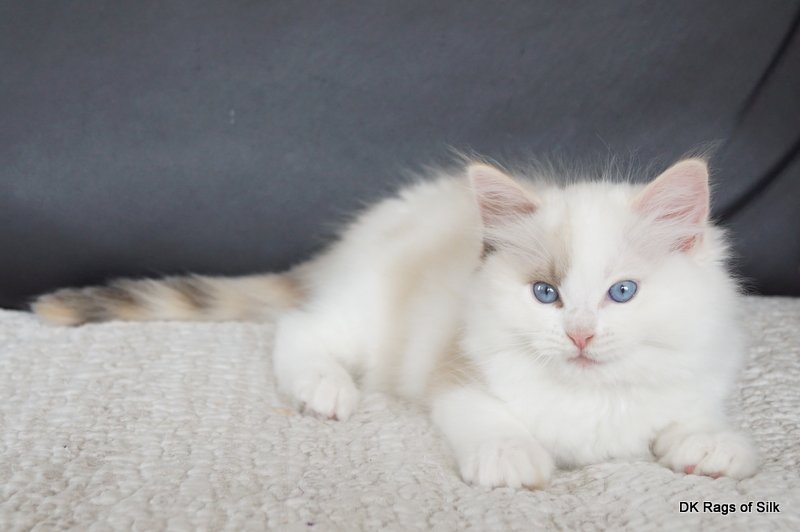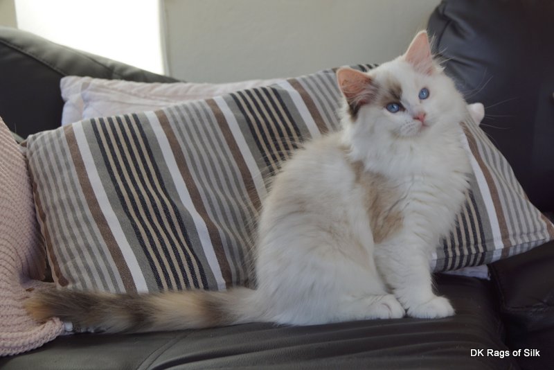 Theodora er den smukkeste lille tortiepige med superfin farvefordeling og et dejligste, afslappede temperament. Hun er flyttet ind hos Jette, som har opdrættet Resdallas Rags i Silkeborg. Jette har tidligere været vores fodervært, så vi ved, at Theodora får det bedste hjem.